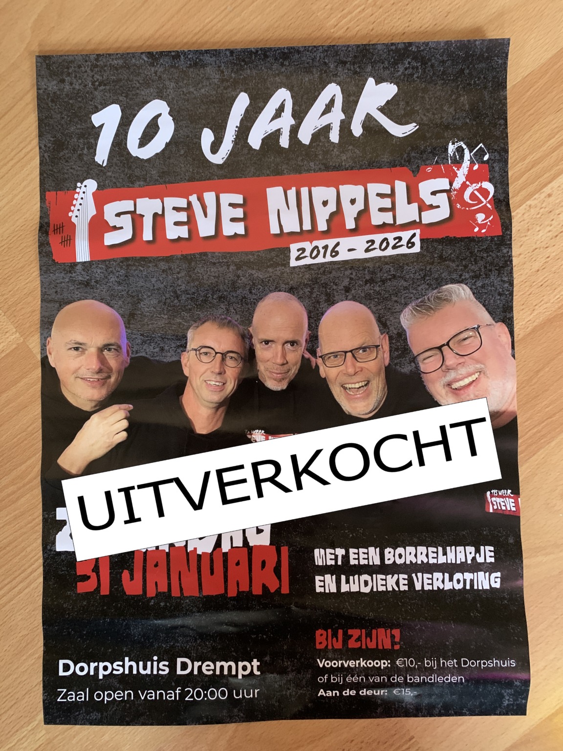 De band Steve Nippels vierde zaterdag 31 januari hun jubileum in ons dorpshuis, de plek waar het tien jaar geleden allemaal is begonnen. Het jubileumfeest was ‘kats uutverkocht’ en werd een volledig verzorgde avond met hapjes, drankjes en een ludieke loterij met als hoofdprijs een exclusief kamerconcert van de jubilerende band zelf. Voor de fans waren ook speciale T-shirts ontworpen.
